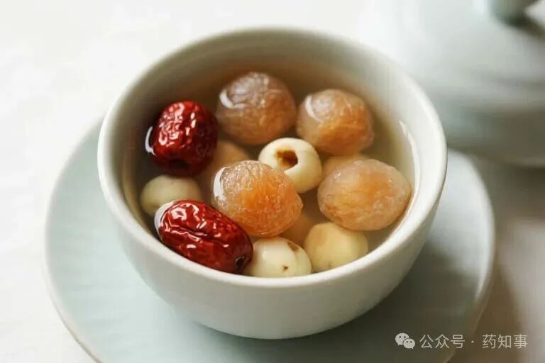 食疗方:桂圆红枣莲子汤。 桂圆肉15克、红枣10枚、莲子30克一同煲汤,可加适量红糖。这款甜汤暖身又暖心,专门对付面色无华和失眠。